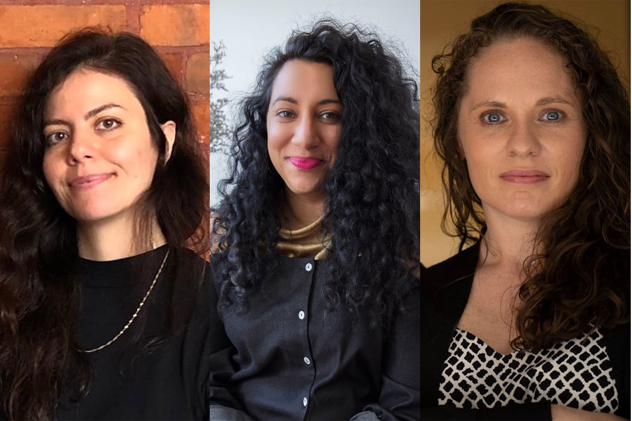 L-R: Ruba Katrib MA ’07, Diya Vij ’08 (photo by Sam Richardson), and Cynthia Conti-Cook ’03.